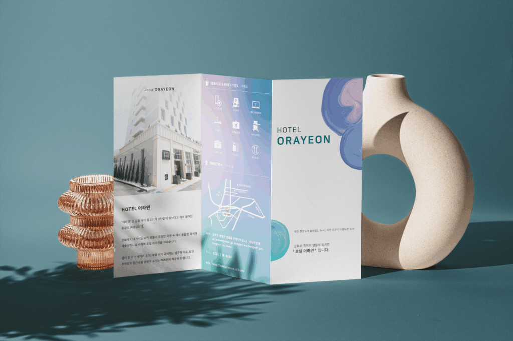 담백하면서도 세련된 분위기는 호텔 브랜딩에 걸맞은 품격과 신뢰를 전달하며, 다양한 인쇄 매체에서도 일관된 아이덴티티를 유지합니다.